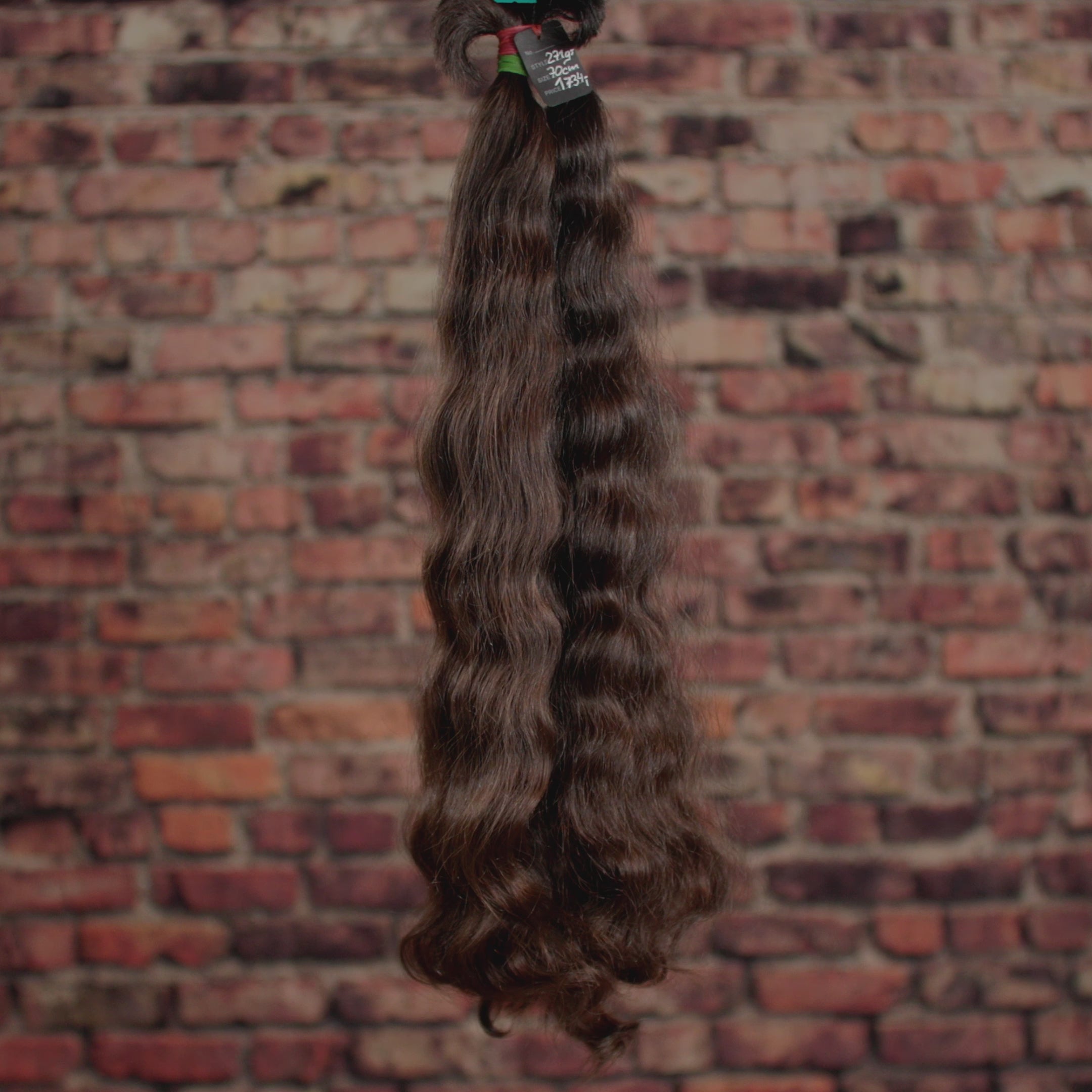 Dieser braune Brasilhaar Zopf besticht durch die typische, enge Welle und natürlichem Glanz, der das Haar besonders edel macht.
